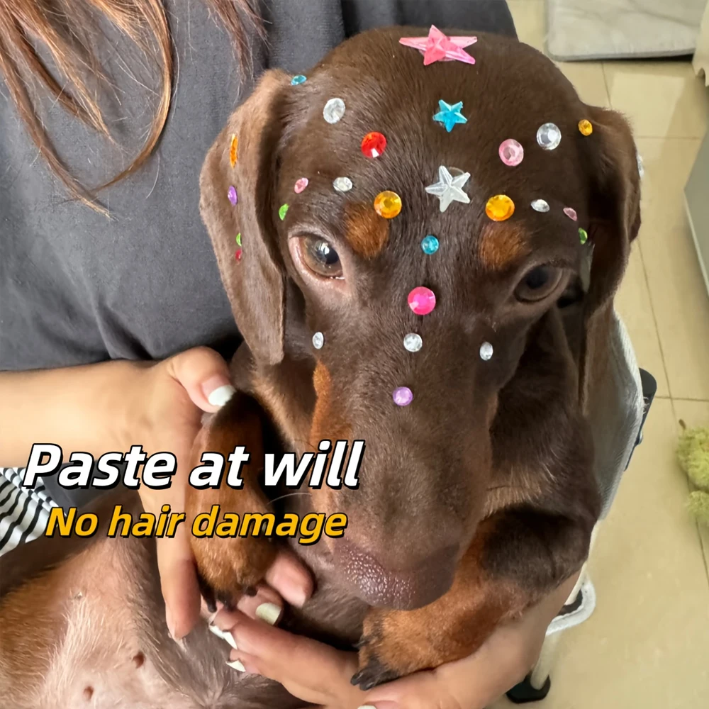 Perfect for photo shoots, special occasions, or everyday glam, these accessories let your furry friend shine. The DIY design makes them easy to apply and remove without leaving residue. Ideal for pet salons or home use, they elevate grooming to a creative experience. Fun, fashionable, and charming, these gemstone stickers make pets sparkle with personality.